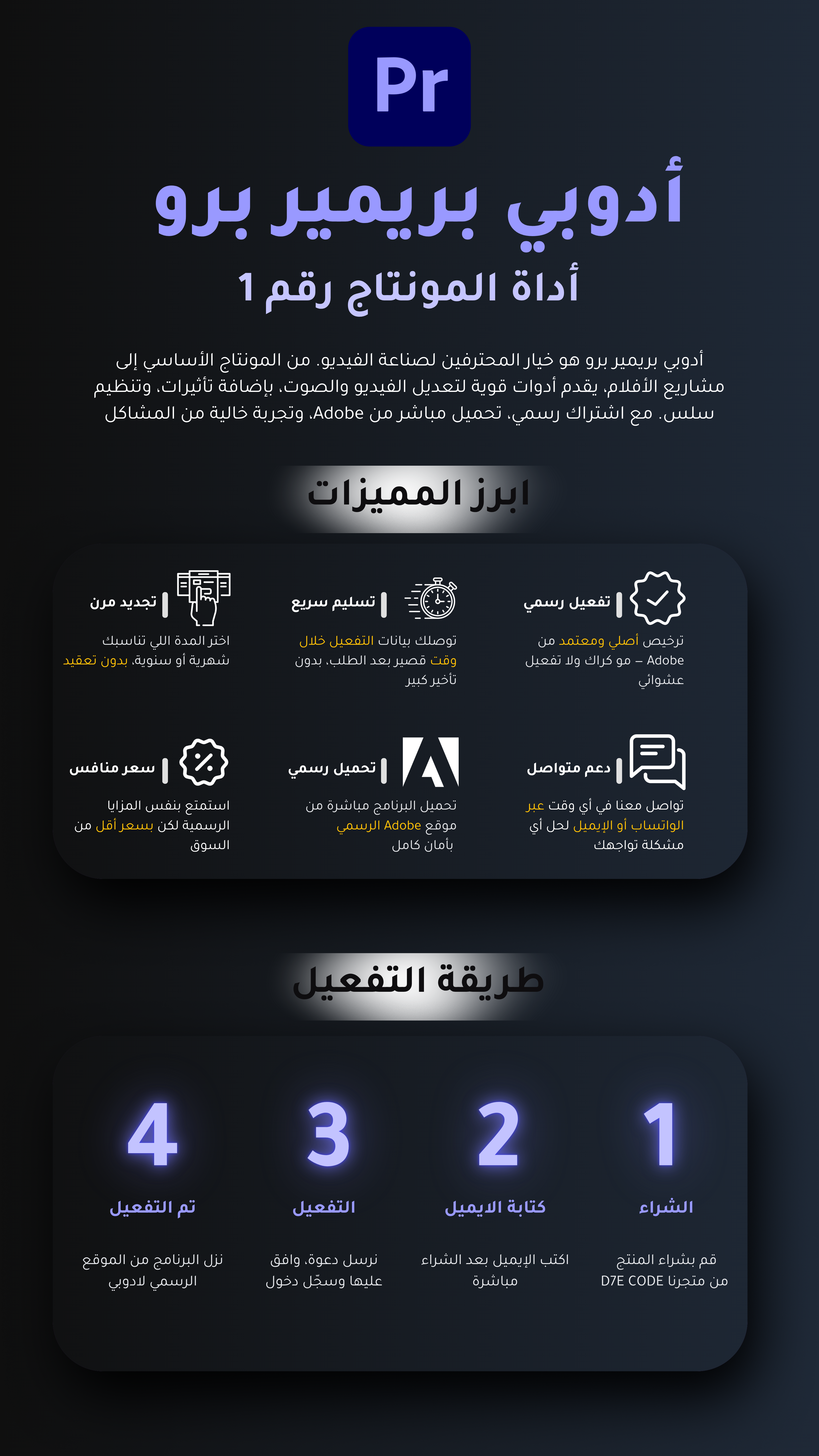 الأسئلة الشائعة - اشتراك Adobe Premiere Pro 🎬✨ حرر فيديوهاتك باحترافية وصمم محتوى مميز بكل سهولة!